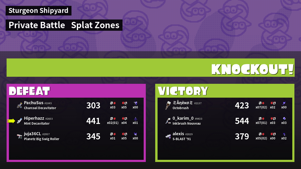 | Mode | Splat Zones - Private Battle | ||