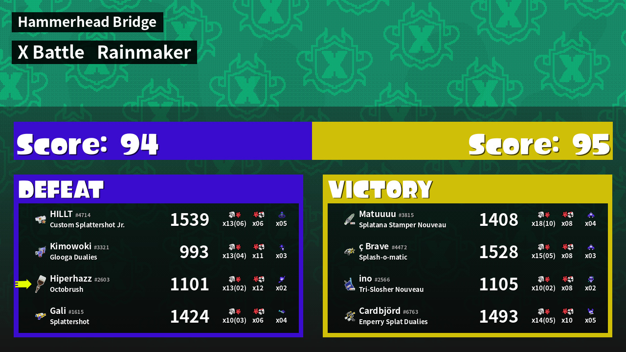 | Medals | #1 Overall Splatter #1 Enemy Splatter #1 Damage Taker | ||
