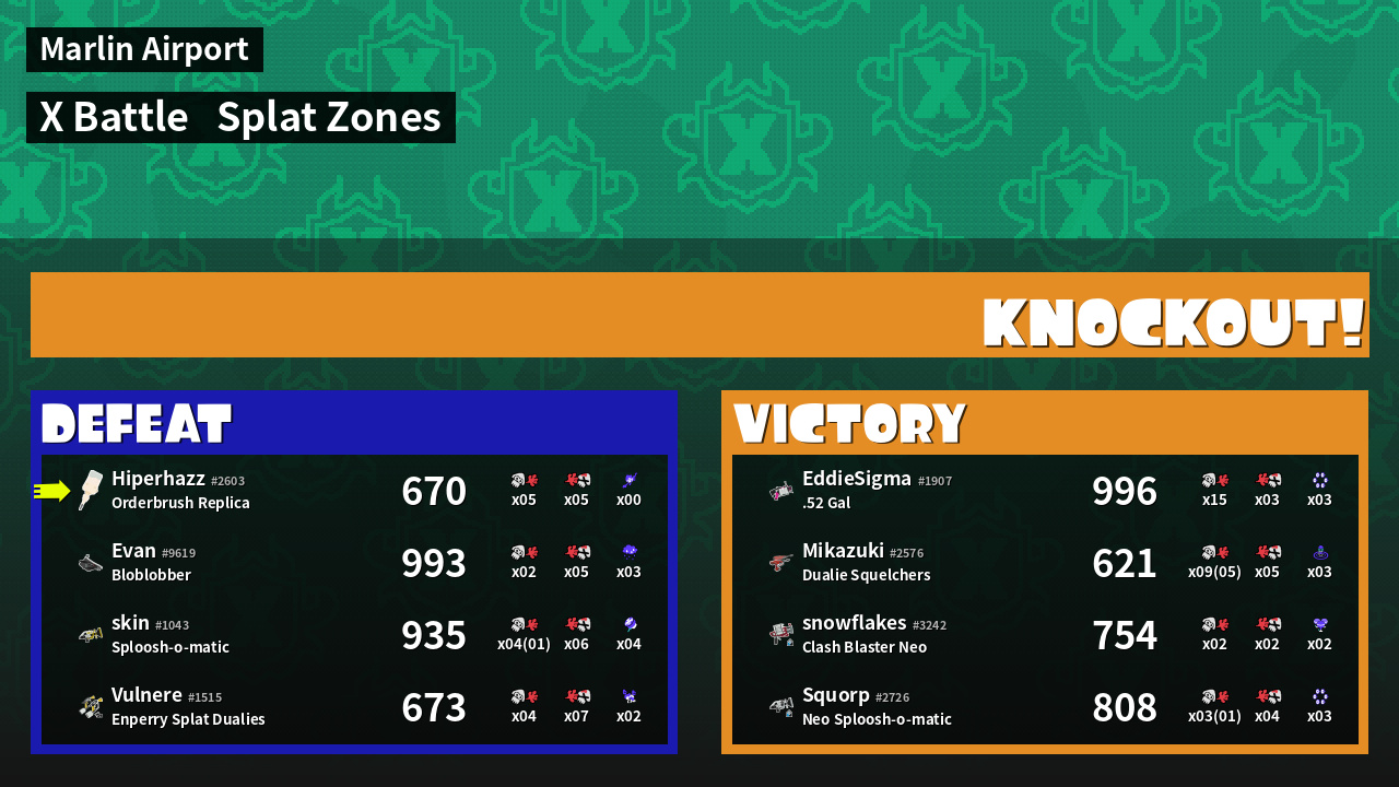 | Mode | Splat Zones - X Battle | ||
