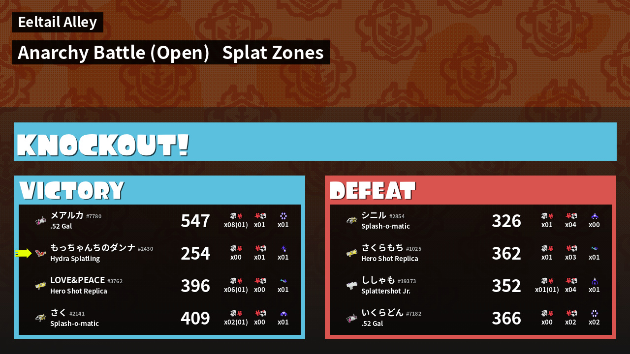 | Mode | Splat Zones - Anarchy Battle (Open) | ||