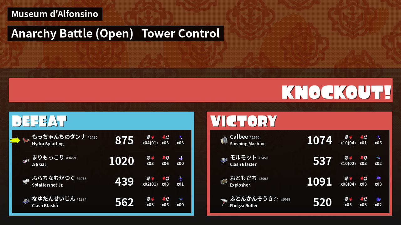 | Mode | Tower Control - Anarchy Battle (Open) | ||
