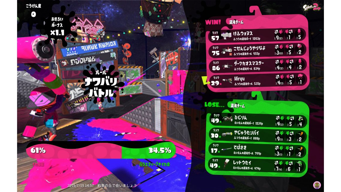 | Team 混沌 バラエティーブキイカ会 Win Streak: 0 | 3,400 | 14 / 15 | 0.93 48.28% | ||||
