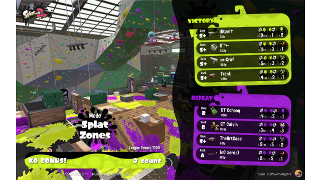 | Mode | Splat Zones - League Battle (Quad) |