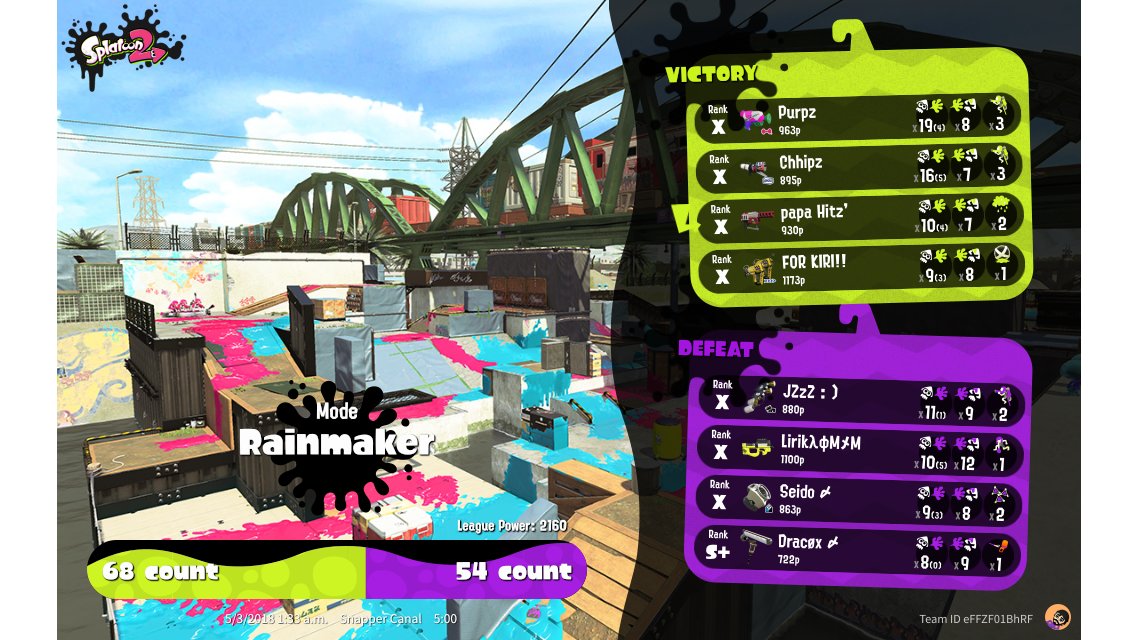| Name | Weapon | Level | Rank | Inked | k+a/sp | k/d |