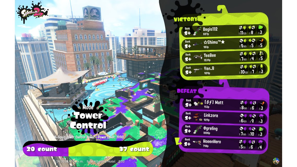| Mode | Tower Control - Ranked Battle | ||||||||||||||||||||||||||||||||||||||||