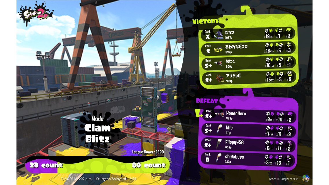 | Mode | Clam Blitz - League Battle (Twin) | ||||||||||||||||||||||||||||||||||