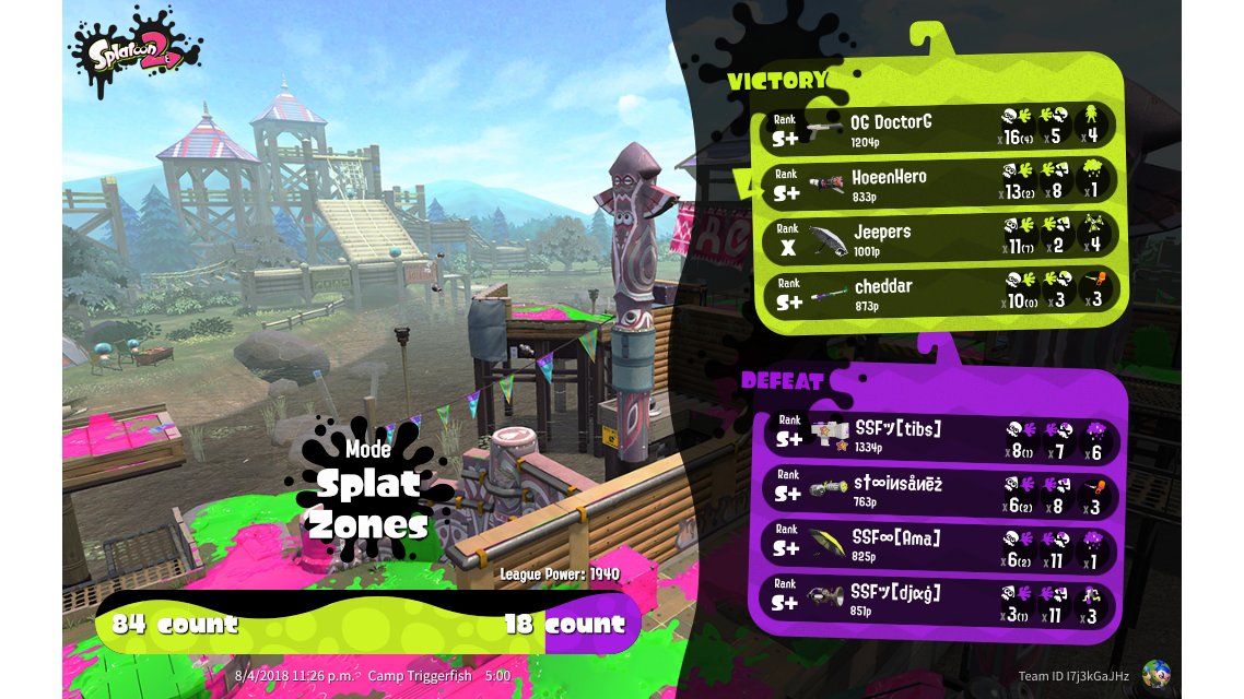 | Mode | Splat Zones - League Battle (Quad) | |||||||||||||||||||||||||||||||||||||