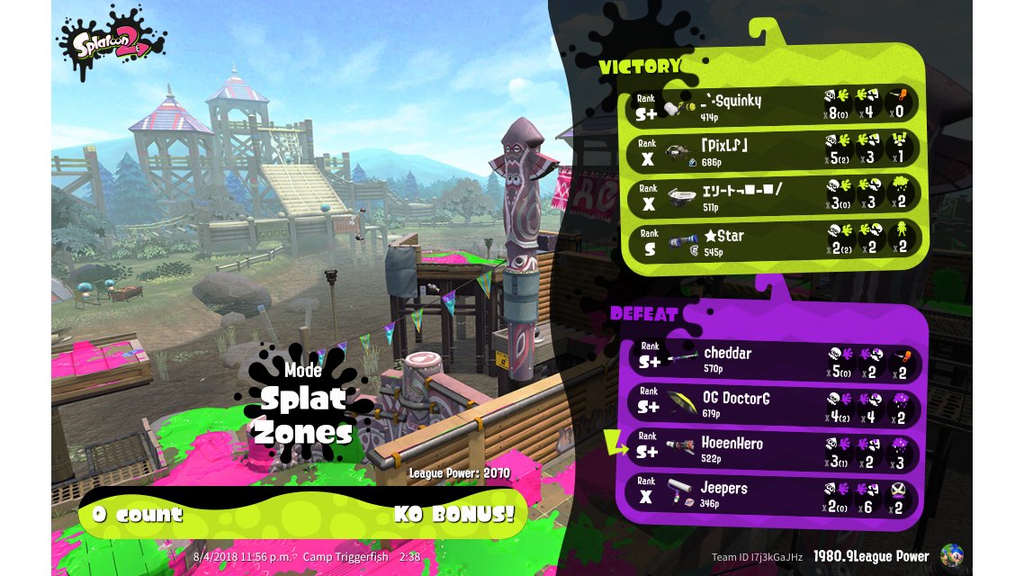 | Mode | Splat Zones - League Battle (Quad) | ||||||||||||||||||||||||||||||||||||||||