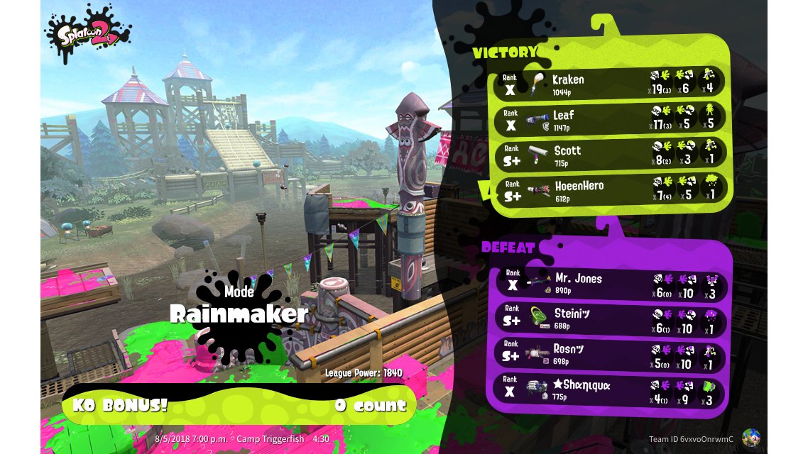 | Mode | Rainmaker - League Battle (Quad) | ||||||||||||||||||||||||||||||||||||||||