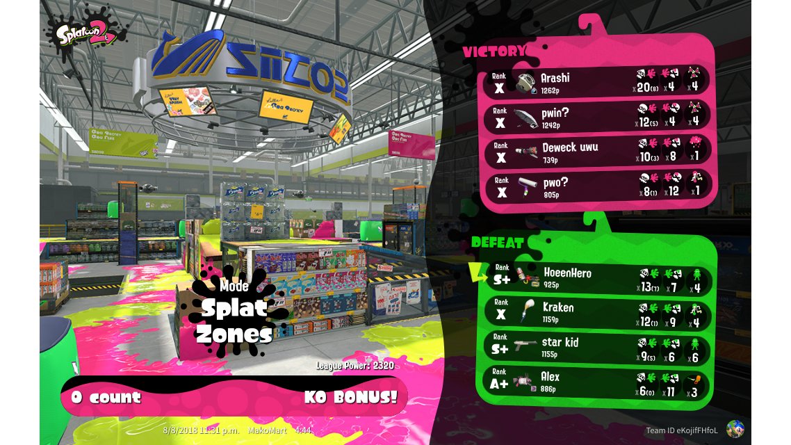 | Mode | Splat Zones - League Battle (Quad) | ||||||||||||||||||||||||||||||||||