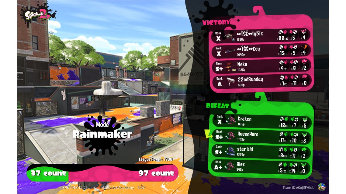 | Mode | Rainmaker - League Battle (Quad) | ||||||||||||||||||||||||||||