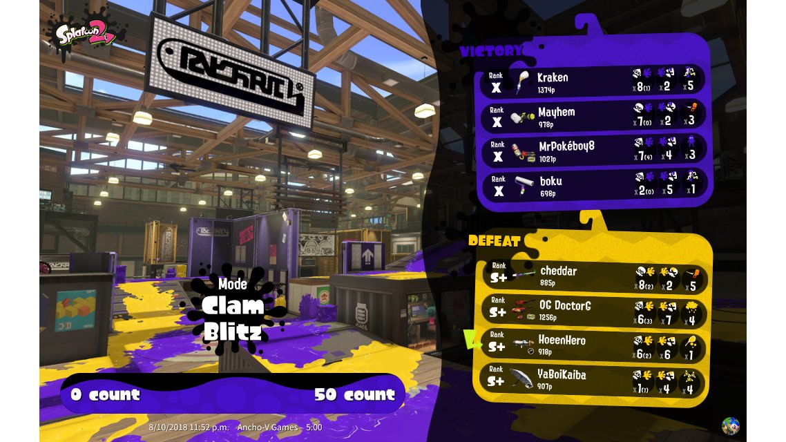 | Mode | Clam Blitz - Private Battle | ||||||||||||||||||||||||||||