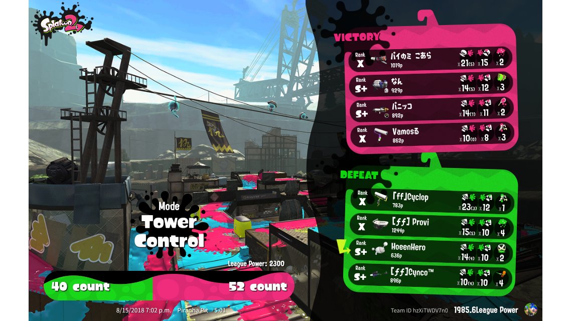 | Mode | Tower Control - League Battle (Quad) | ||||||||||||||||||||||||||||||||||