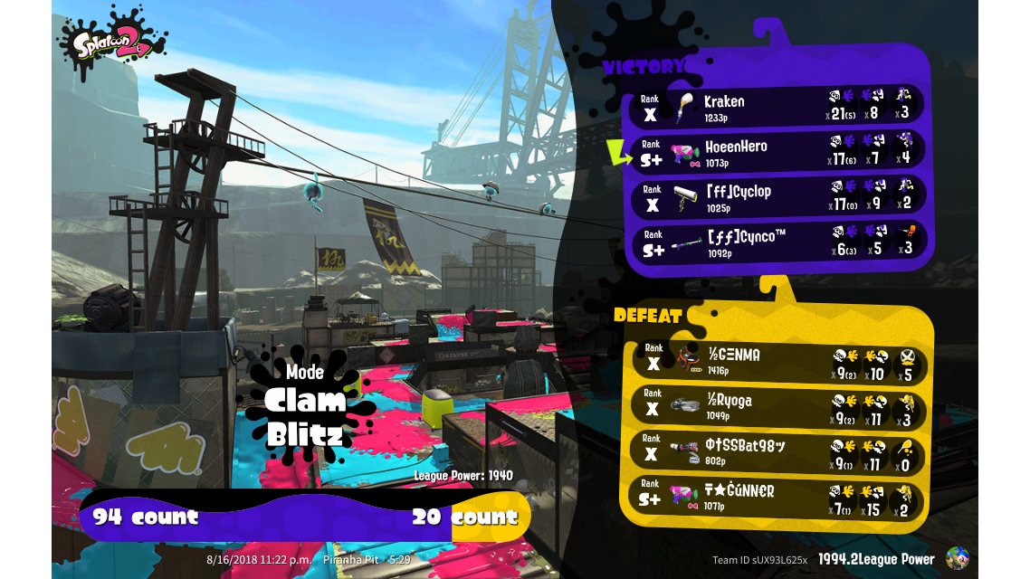 | Mode | Clam Blitz - League Battle (Quad) | ||||||||||||||||||||||||||||||||||