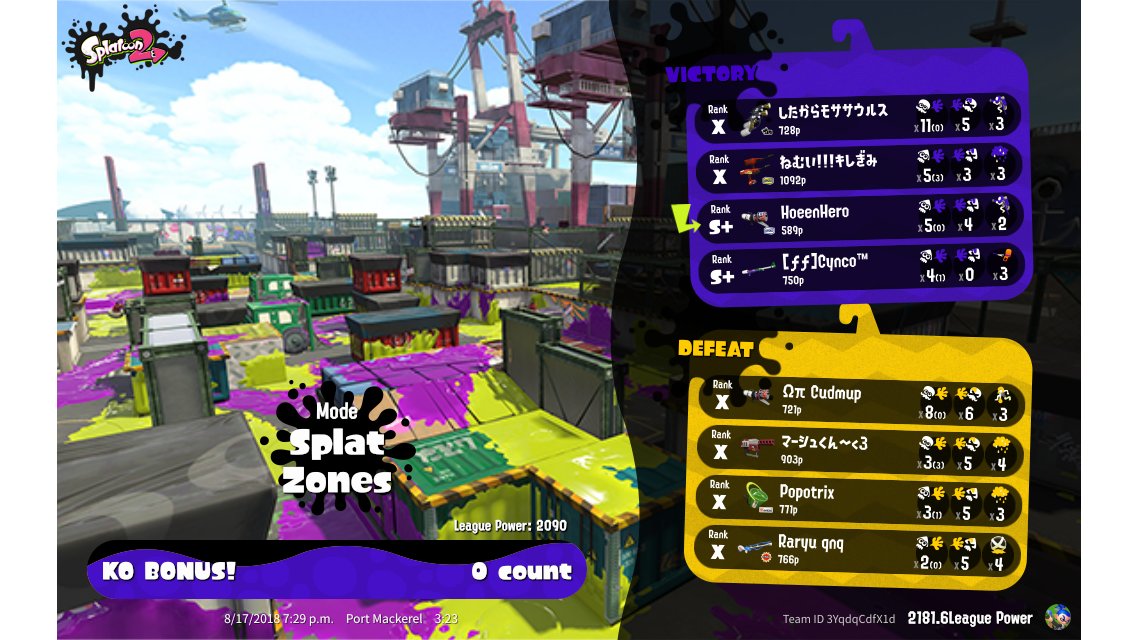 | Mode | Splat Zones - League Battle (Twin) | ||||||||||||||||||||||||||||||||||||||||