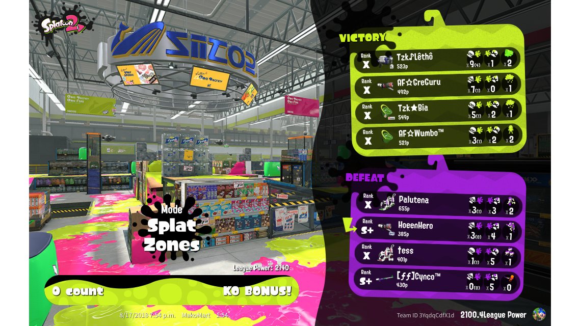 | Mode | Splat Zones - League Battle (Twin) | ||||||||||||||||||||||||||||||||||||||||