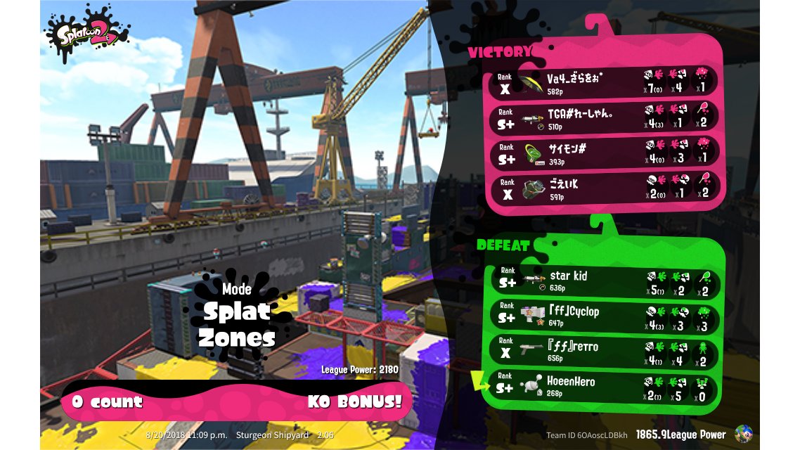 | Mode | Splat Zones - League Battle (Quad) | ||||||||||||||||||||||||||||||||||