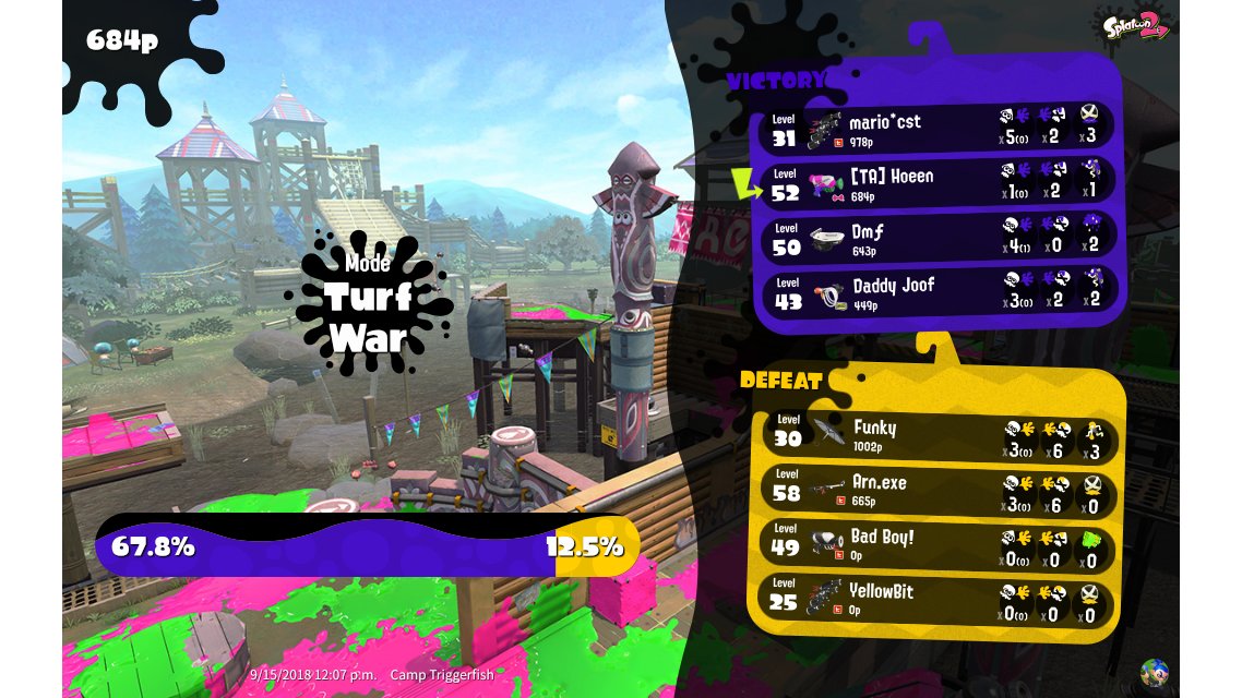 | Mode | Turf War - Regular Battle | |||||||||||||||||||||||||||||||||||||