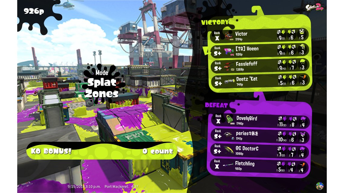 | Mode | Splat Zones - Private Battle | |||||||||||||||||||||||||||||||||||||