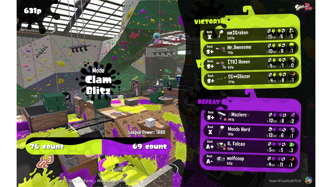 | Mode | Clam Blitz - League Battle (Twin) | |||||||||||||||||||||||||||||||||||||||||||