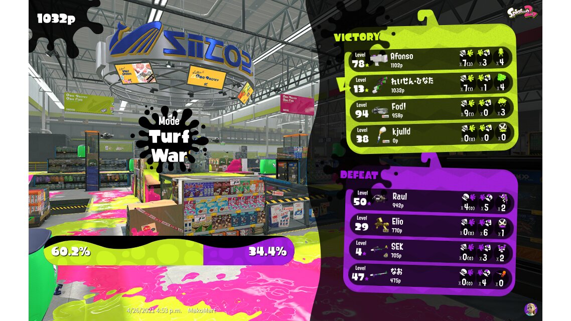 | Mode | Turf War - Regular Battle | |||||||||||||||||||||||||||||||