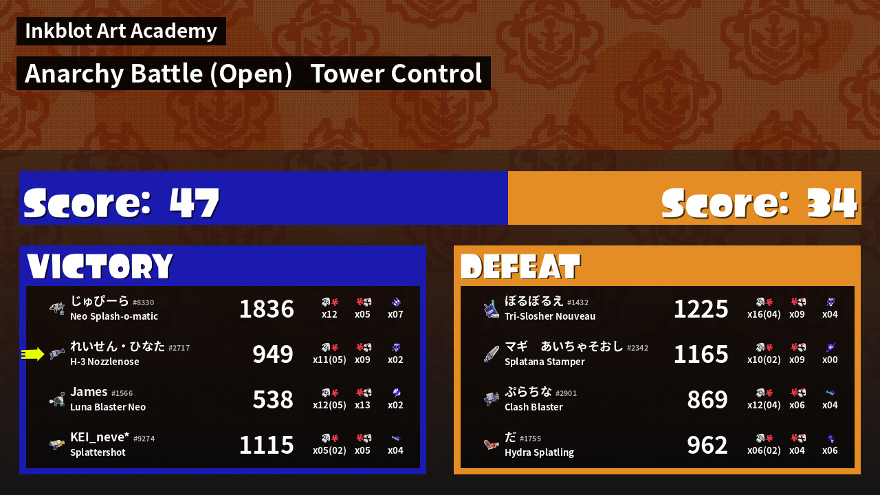 | Mode | Tower Control - Anarchy Battle (Open) | ||