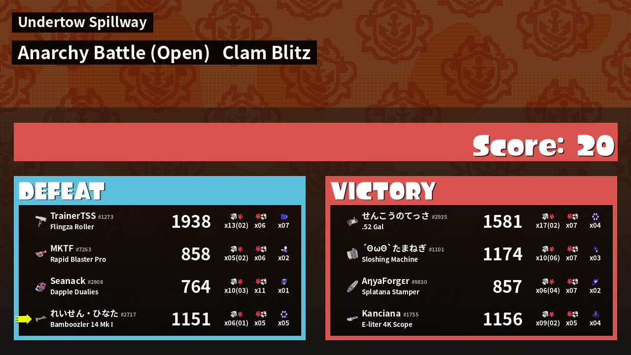| Mode | Clam Blitz - Anarchy Battle (Open) | ||