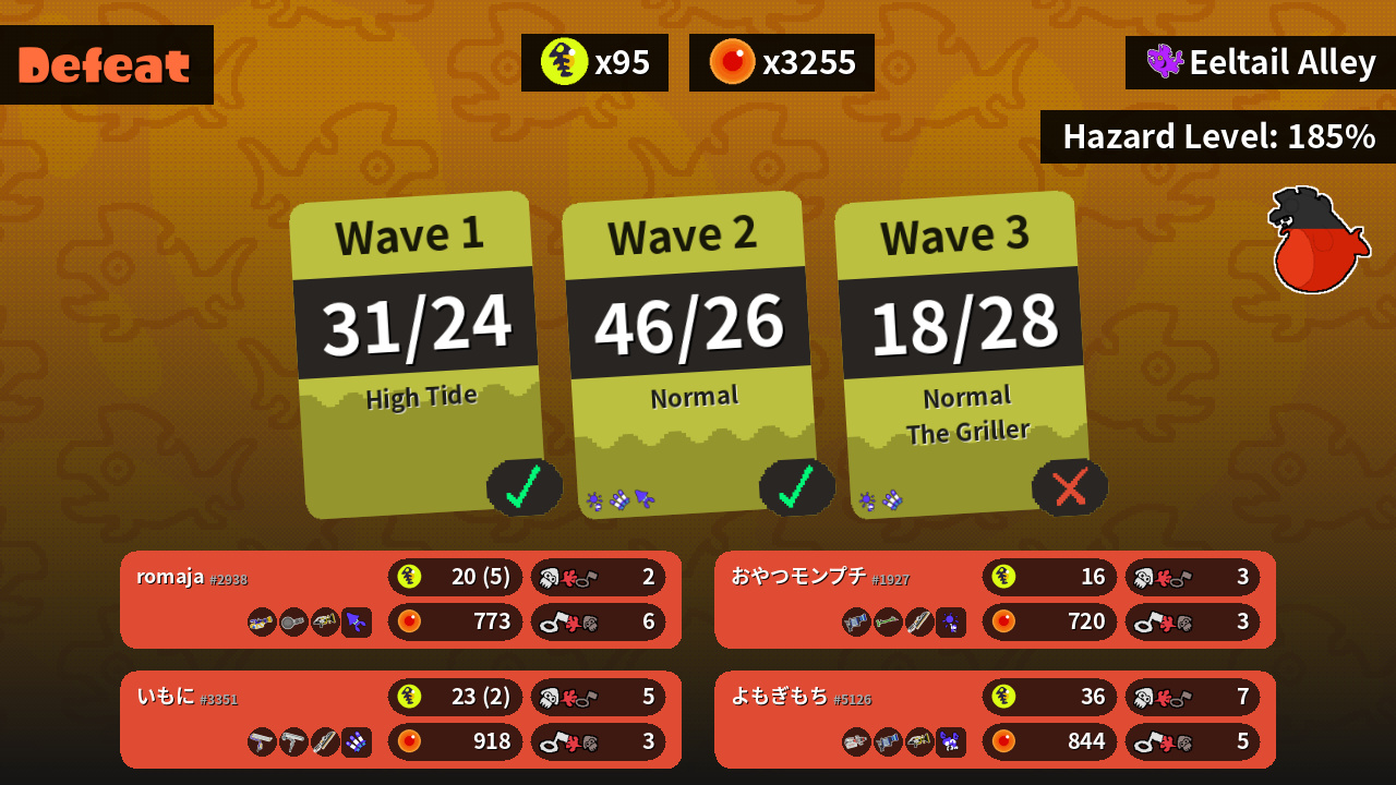 | Weapons | Mini Splatling Nautilus 47 Sploosh-o-matic | Heavy Edit Splatling L-3 Nozzlenose Sploosh-o-matic | Splat Roller Dynamo Roller Splatana Wiper | L-3 Nozzlenose Bamboozler 14 Mk I Splatana Wiper |