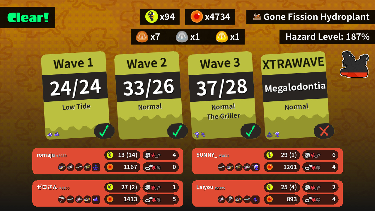 | Boss Salmonid | 11 | 17 | 14 | 11 |