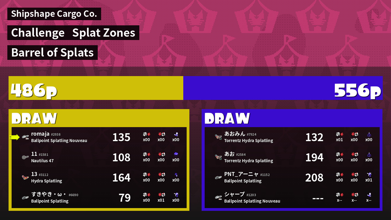 Challenge | Barrel of Splats Muster as much firepower as you can<br />in this battle of the splatlings! | ||