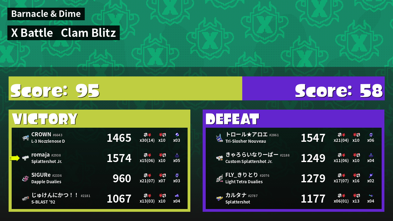 | Mode | Clam Blitz - X Battle | ||