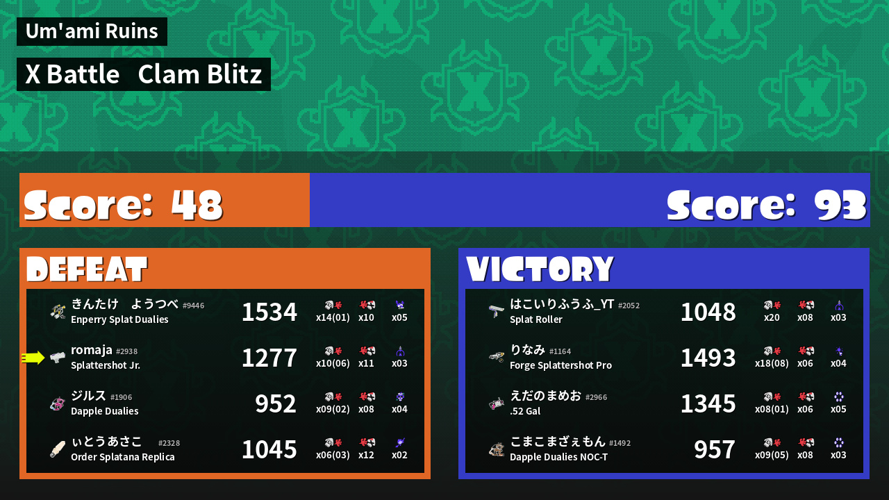 | Medals | #1 Clam Carrier #1 Splat Assister #1 Ink Consumer | ||