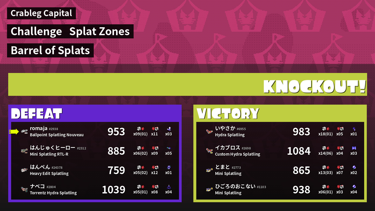 Challenge | Barrel of Splats Muster as much firepower as you can<br />in this battle of the splatlings! | ||
