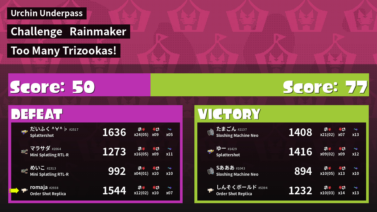 | Medals | #1 Damage Taker #1 Ink Consumer #2 Turf Inker | ||