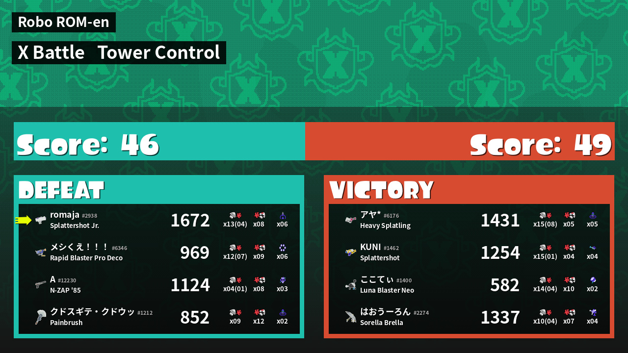 | Mode | Tower Control - X Battle | ||