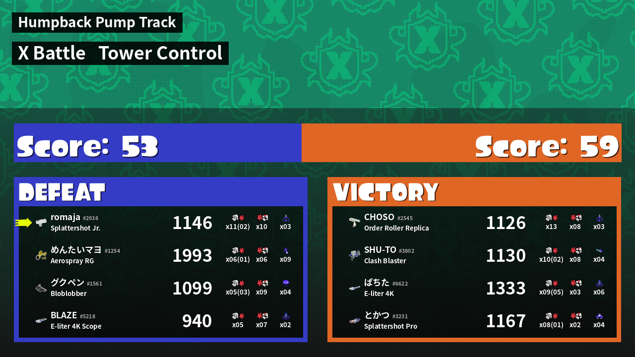 | Mode | Tower Control - X Battle | ||