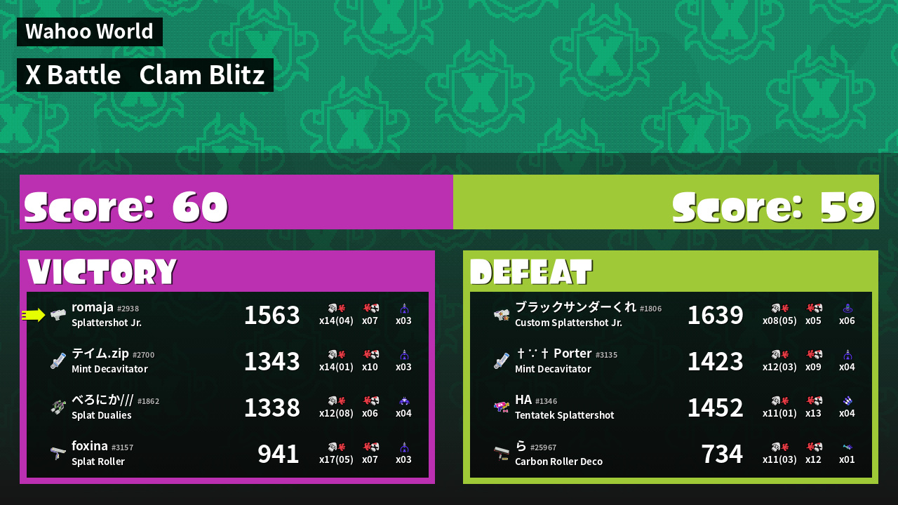 | Mode | Clam Blitz - X Battle | ||