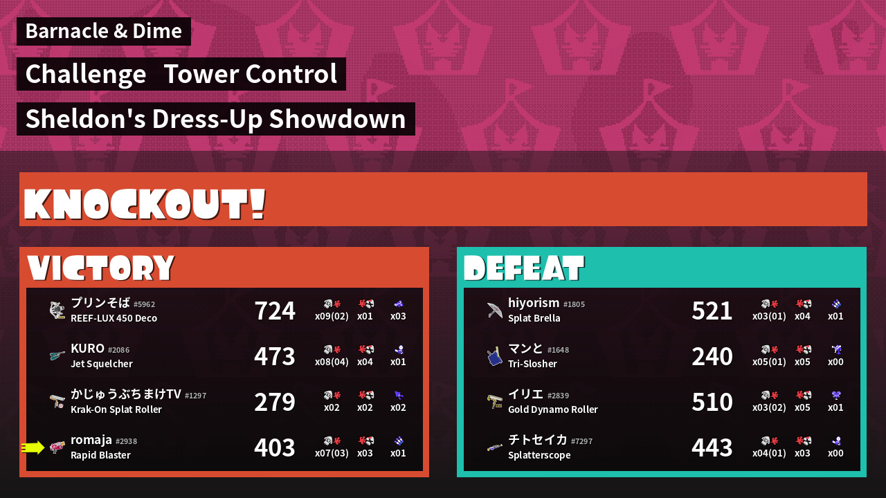 | Medals | #1 Triple Inkstrike User #2 Score Booster #2 Enemy Splatter | ||