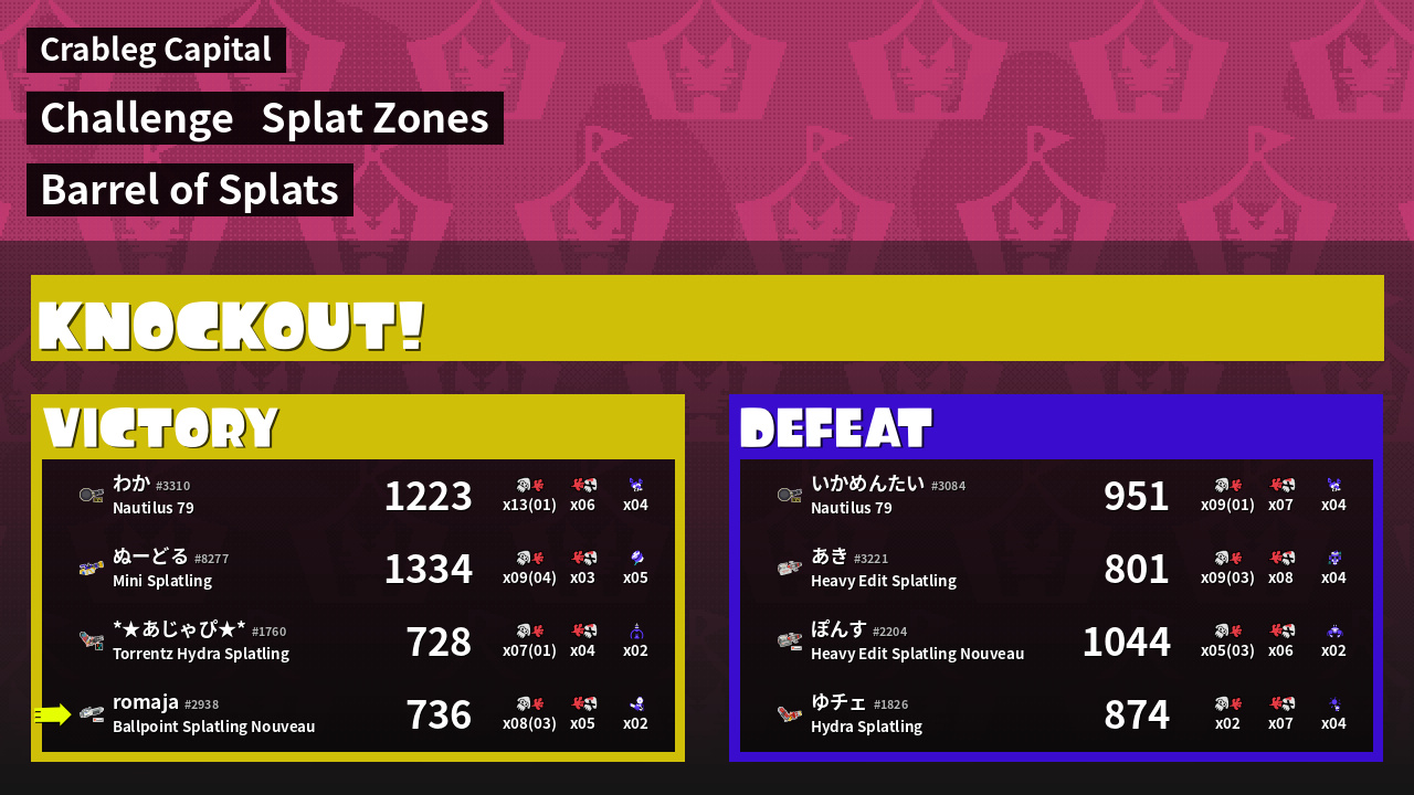 Challenge | Barrel of Splats Muster as much firepower as you can<br />in this battle of the splatlings! | ||