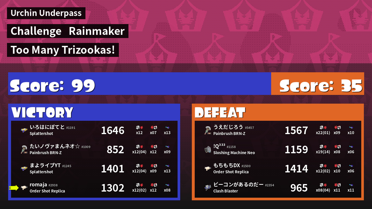 | Medals | #1 Overall Splatter #1 Ground Traveler #1 Ink Consumer | ||
