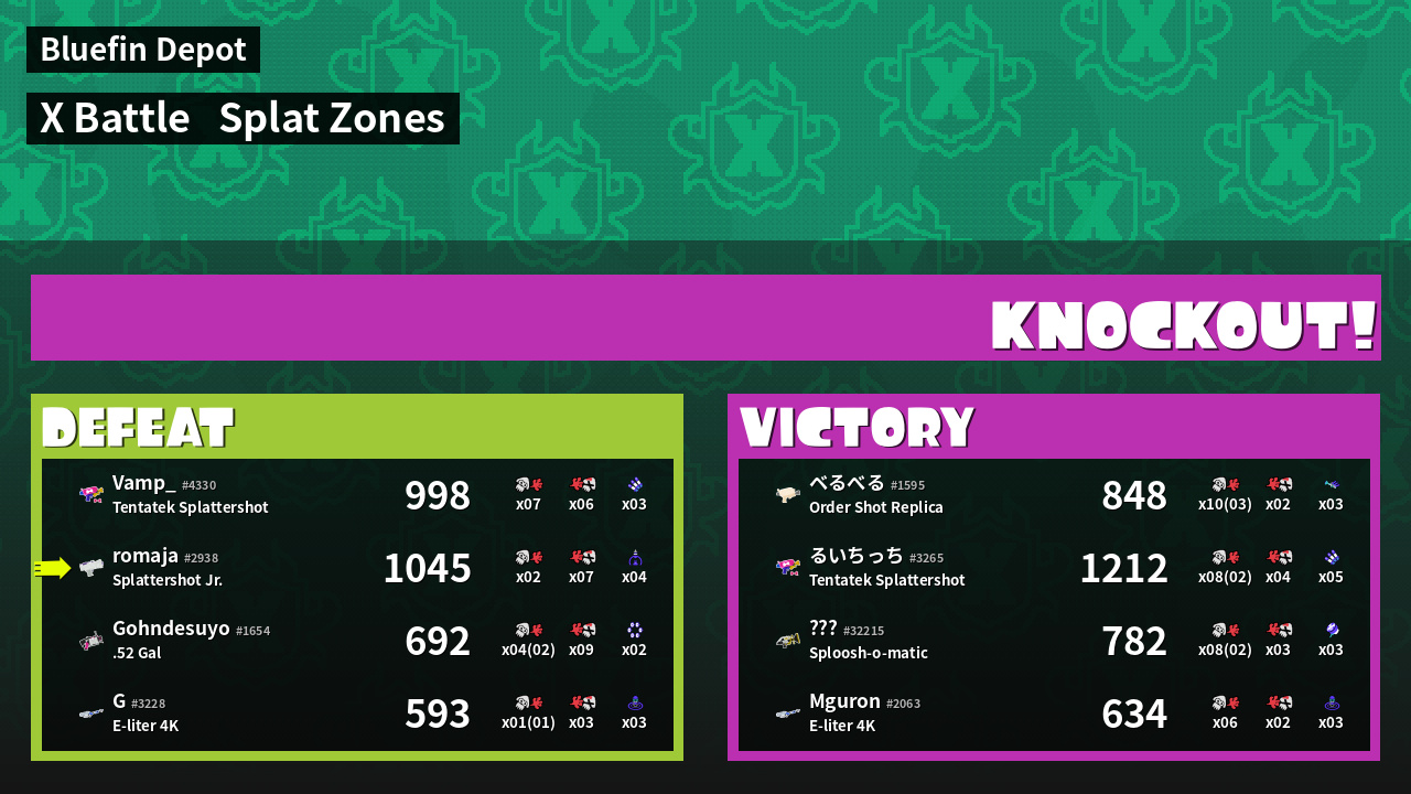 | Mode | Splat Zones - X Battle | ||