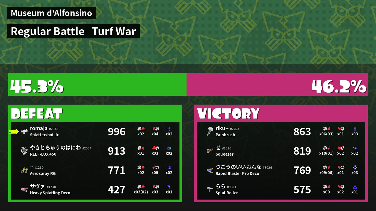 | Mode | Turf War - Regular Battle | ||