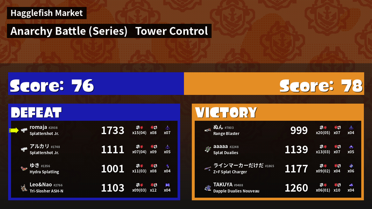 | Mode | Tower Control - Anarchy Battle (Series) | ||