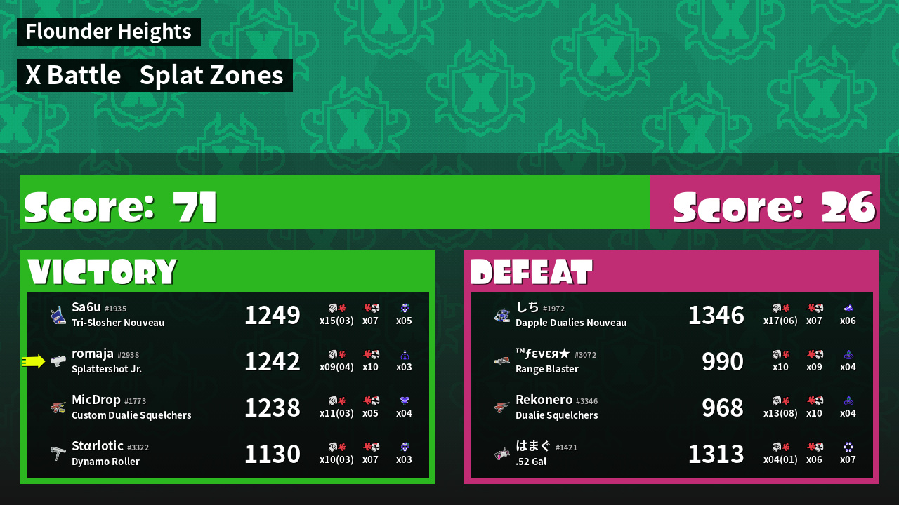 | Mode | Splat Zones - X Battle | ||
