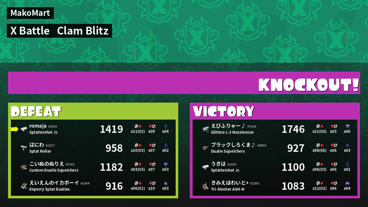 | Mode | Clam Blitz - X Battle | ||