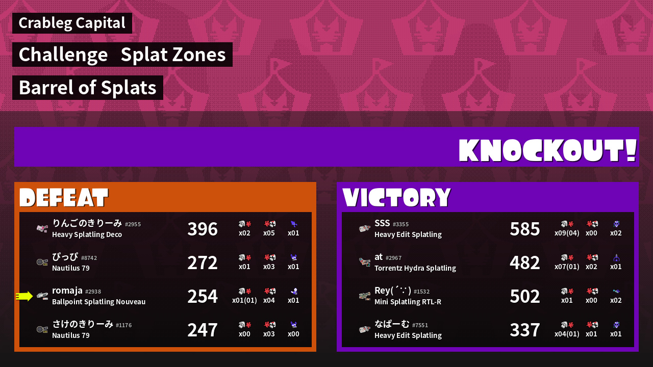 Challenge | Barrel of Splats Muster as much firepower as you can<br />in this battle of the splatlings! | ||