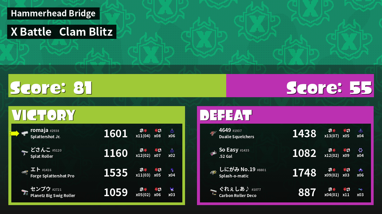 | Mode | Clam Blitz - X Battle | ||