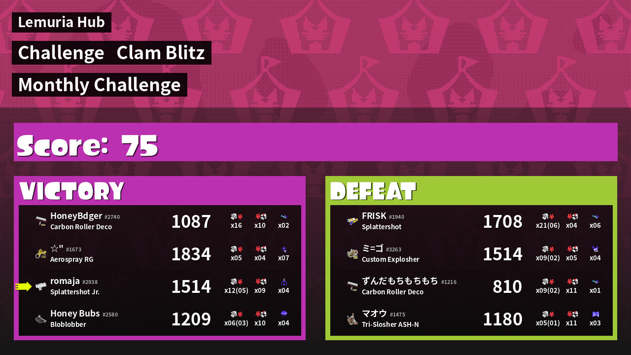 | Mode | Clam Blitz - Challenge | ||