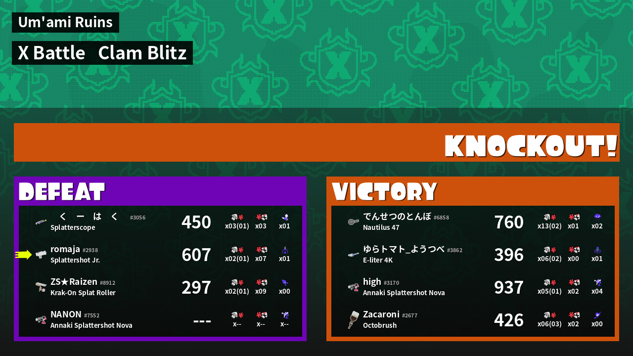 | Medals | #1 Turf Inker #1 Splat Assister #1 Ground Traveler | ||