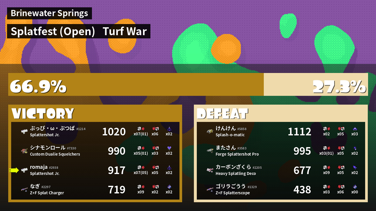 | Medals | #1 Super Jump Spot #1 Splat Assister #1 Base Defender | ||